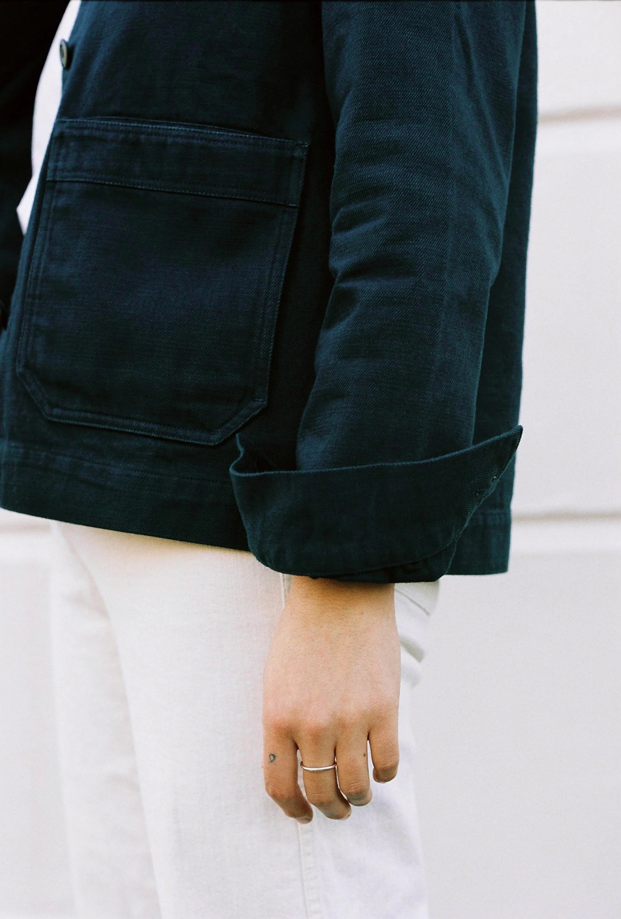 The chore jacket. It gets its origins from French mechanics and steel workers who wore them in the early 1900’s. It’s loose fitting, hardwearing and ideal for working in. We decided to take the icon and reconstruct it for the female figure, without compromising on those big patch pockets.